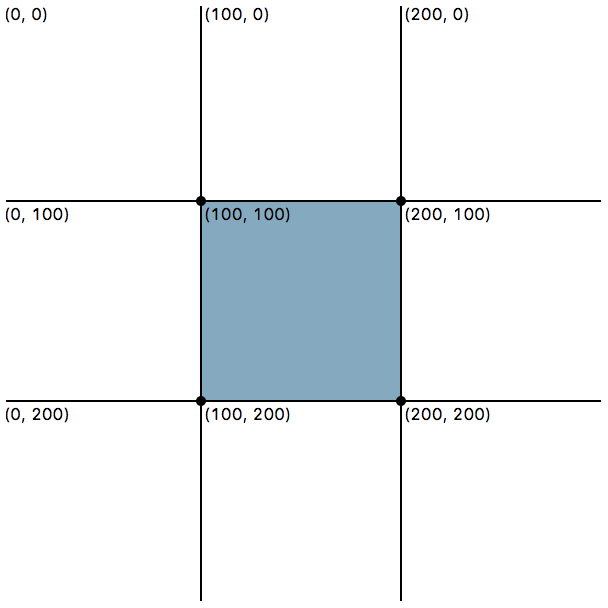 …your function would draw a 100x100 blue square with its top-left coordinate at position (100, 100), as pictured above.