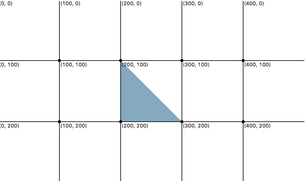 - bottom_left (tuple): a tuple – an point, an (x, y) coordinate – that defines the bottom-left position of the triangle. The first element in the tuple refers to the x-coordinate and the second element in the tuple refers to the y-coordinate.