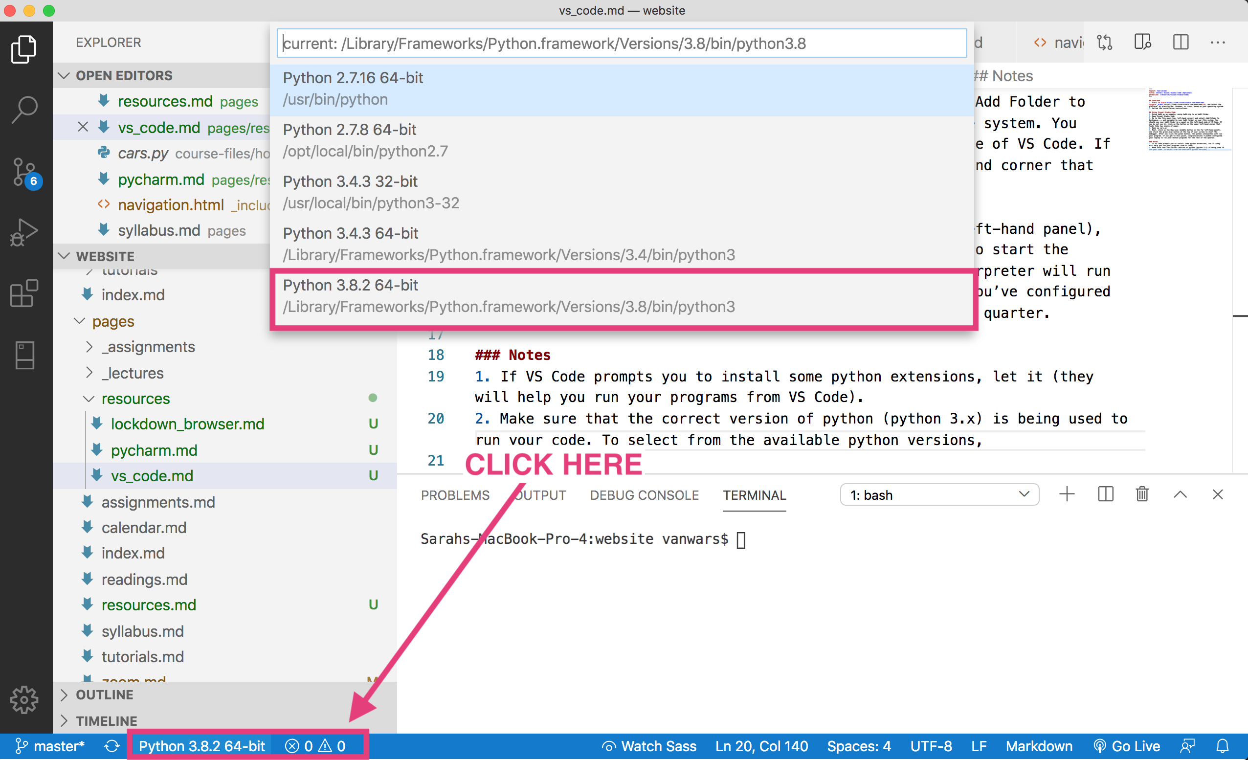 If VS Code prompts you to install some python extensions, let it (they will help you run your programs from VS Code).